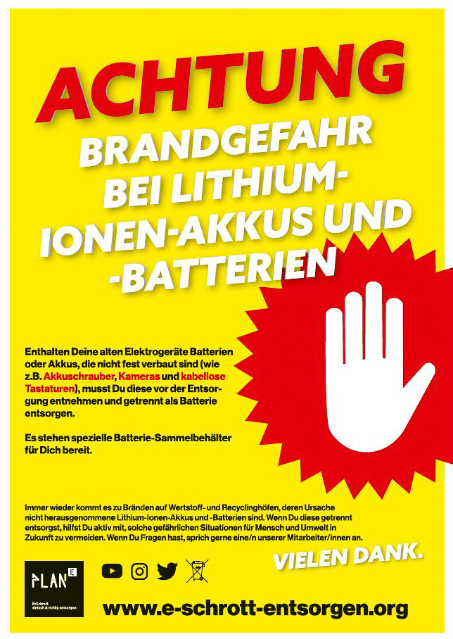 Besondere Hinweise zu Lithiumbatterien siehe → Umweltbundesamt
